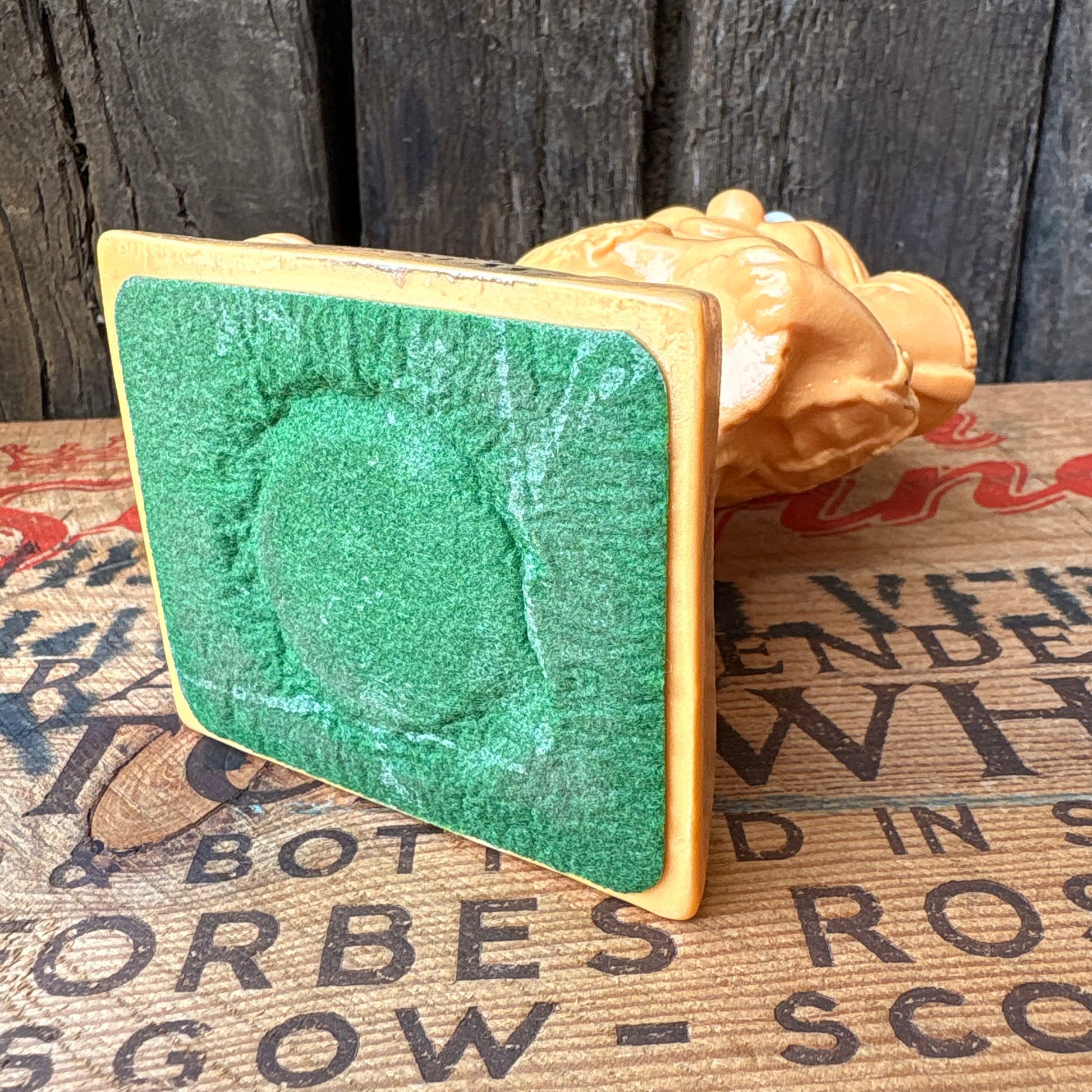 土台にメッセージが記載されたラバー素材の置物+°