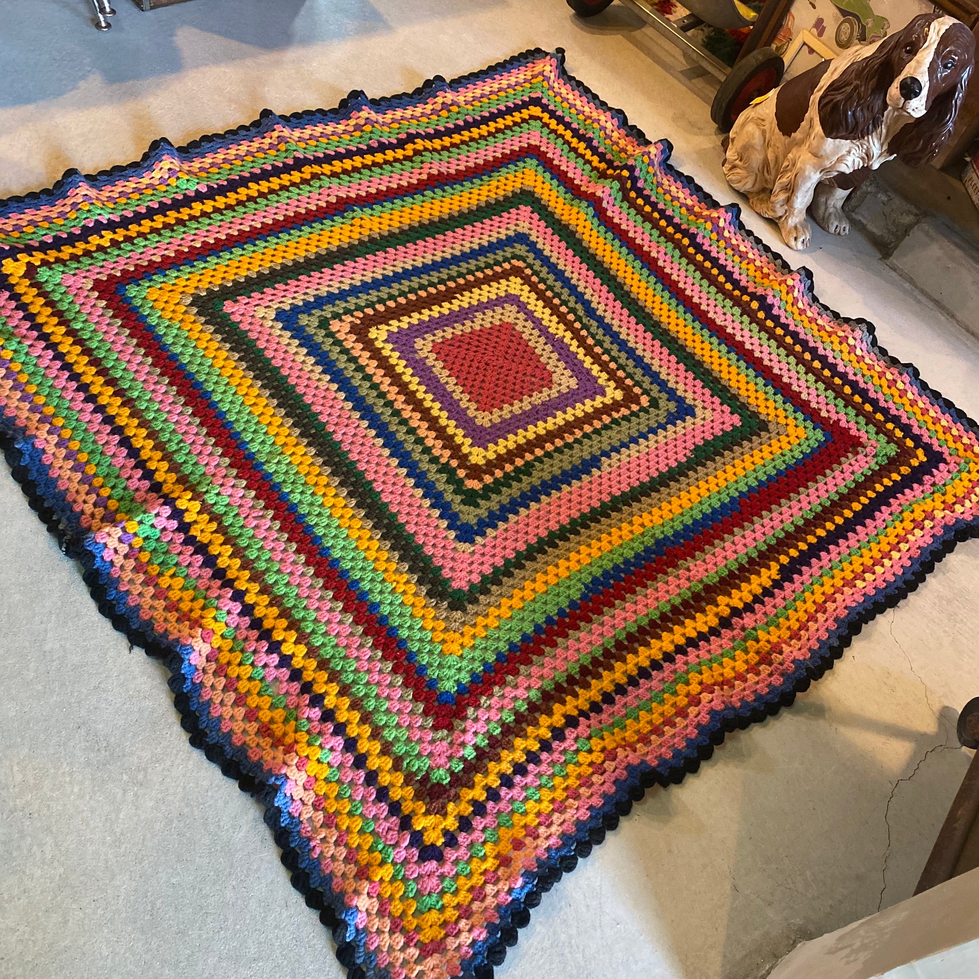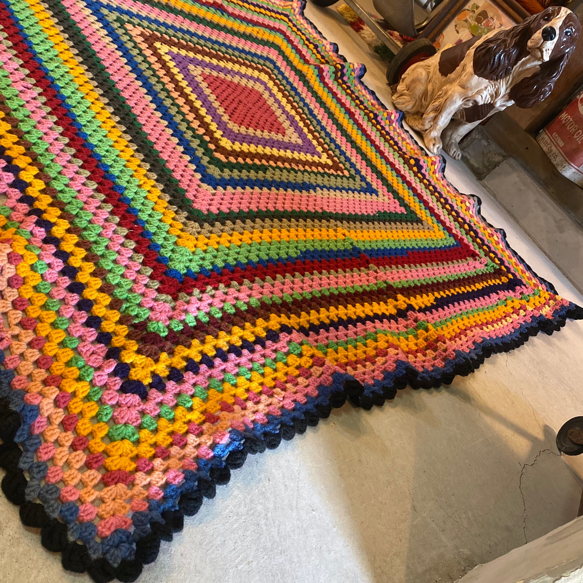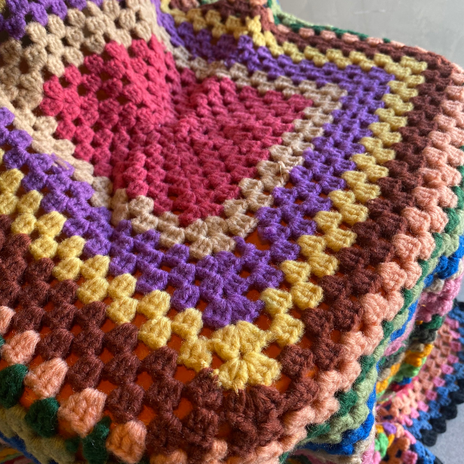 【1970s USA vintage】グラニーブランケット クロシェ カラフル