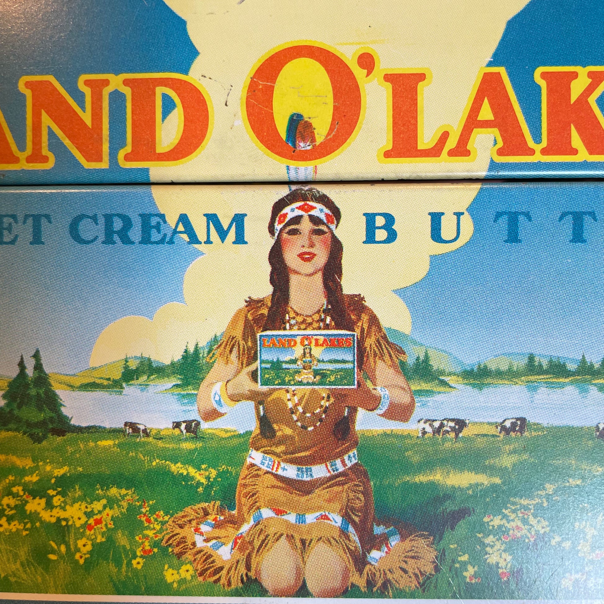 1960〜70年代のネイティブ・アメリカンの女の子のペイントのユニークなブリキのティン缶です。