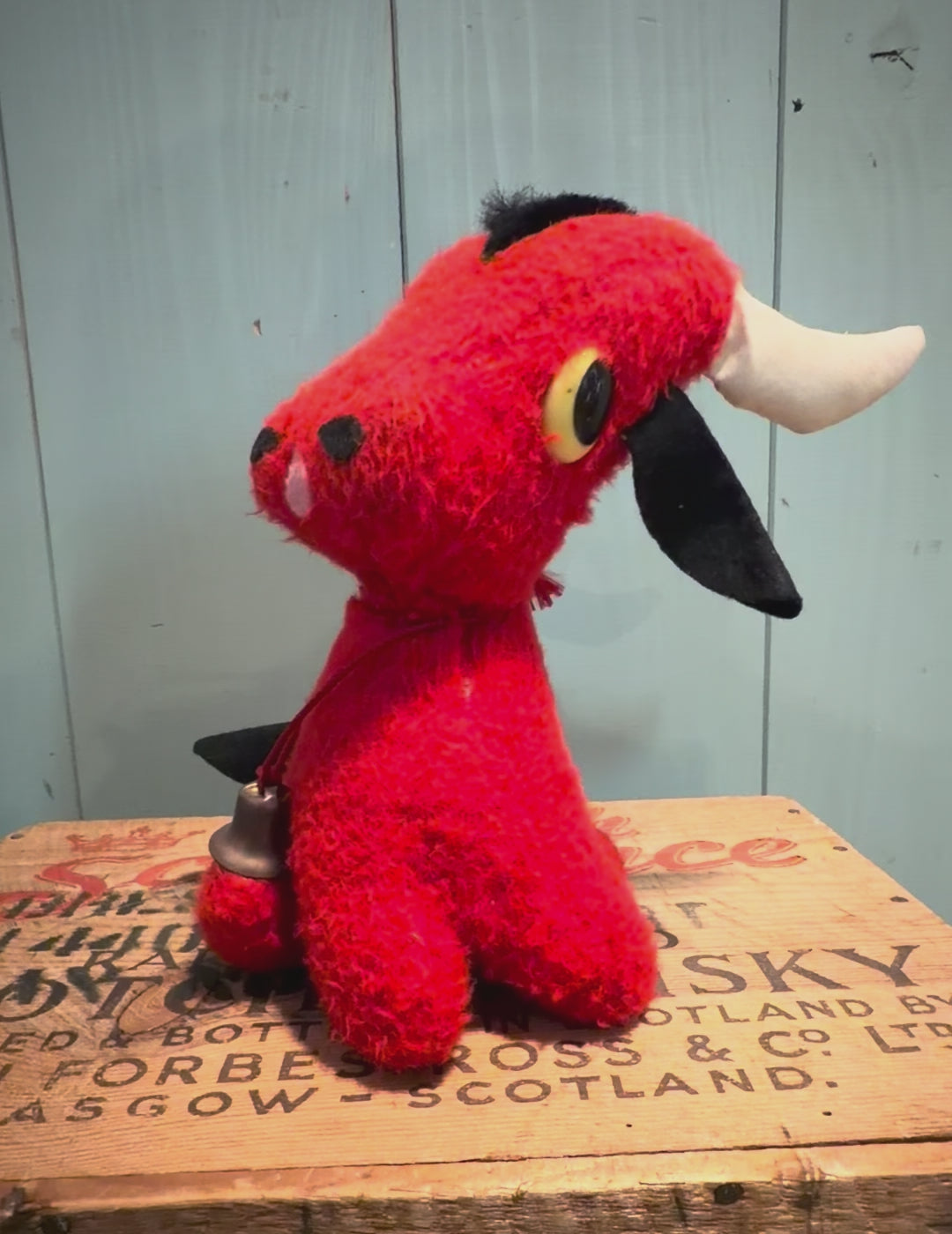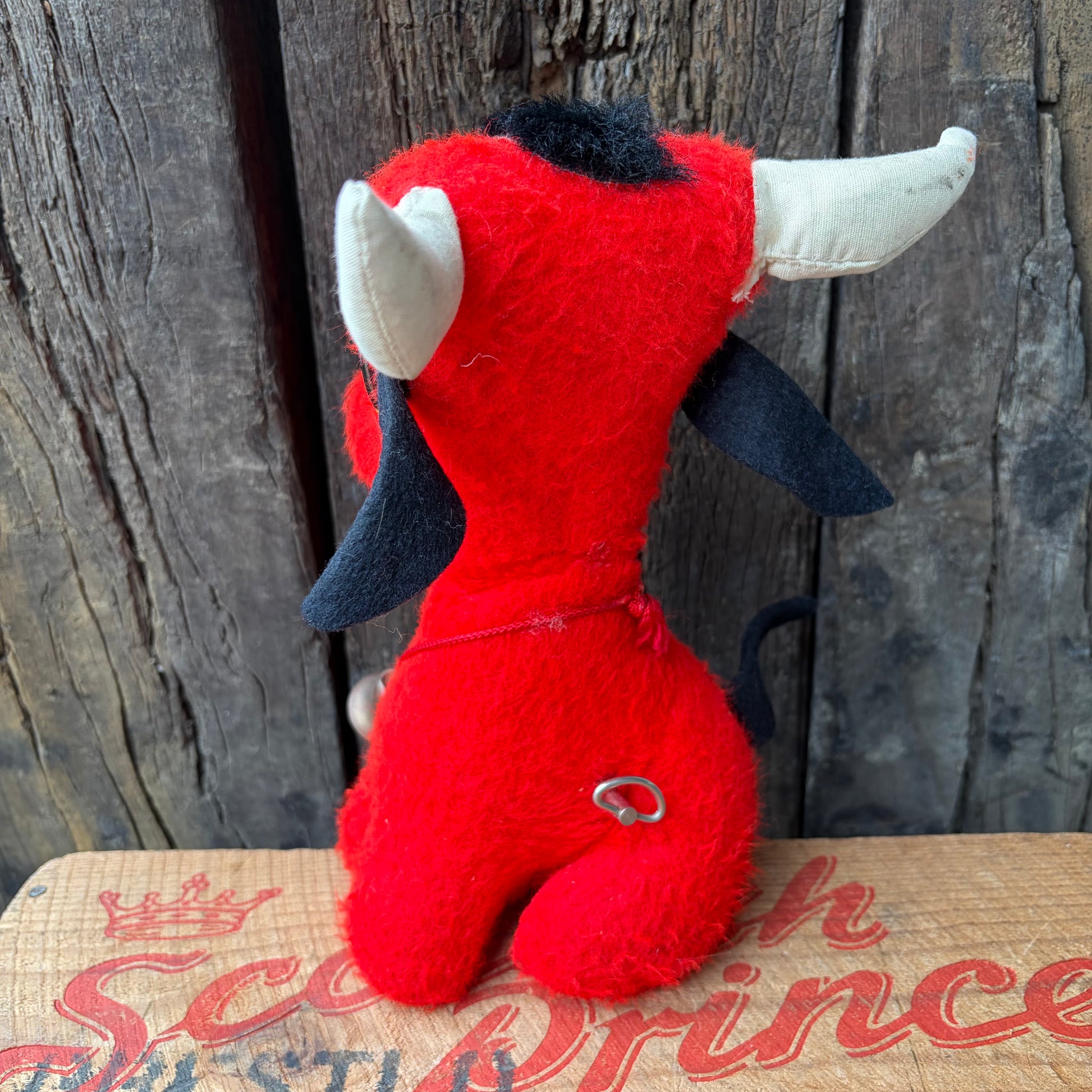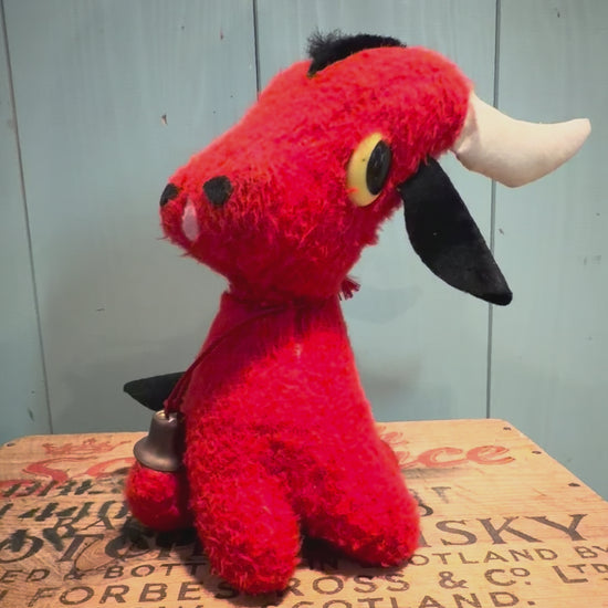 こちらは1950年代から1960年代に製造された、赤いヴィンテージの牛のぬいぐるみです。