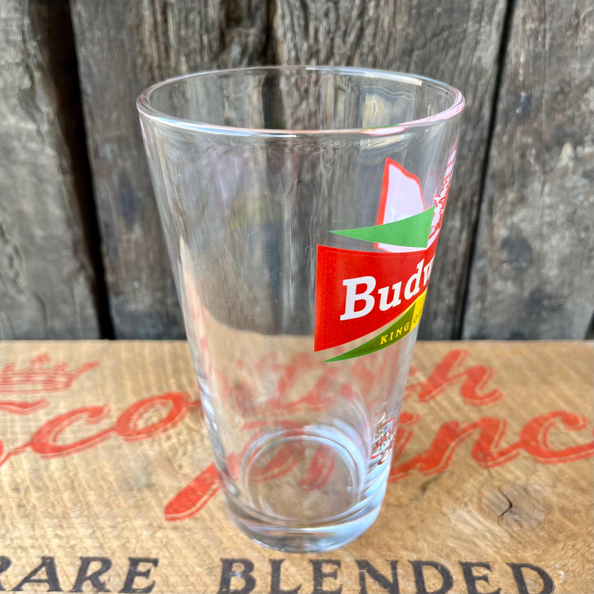 バドワイザーのレトロなパイントグラスで、1957年のデザインを復刻したコレクターズアイテムです。
