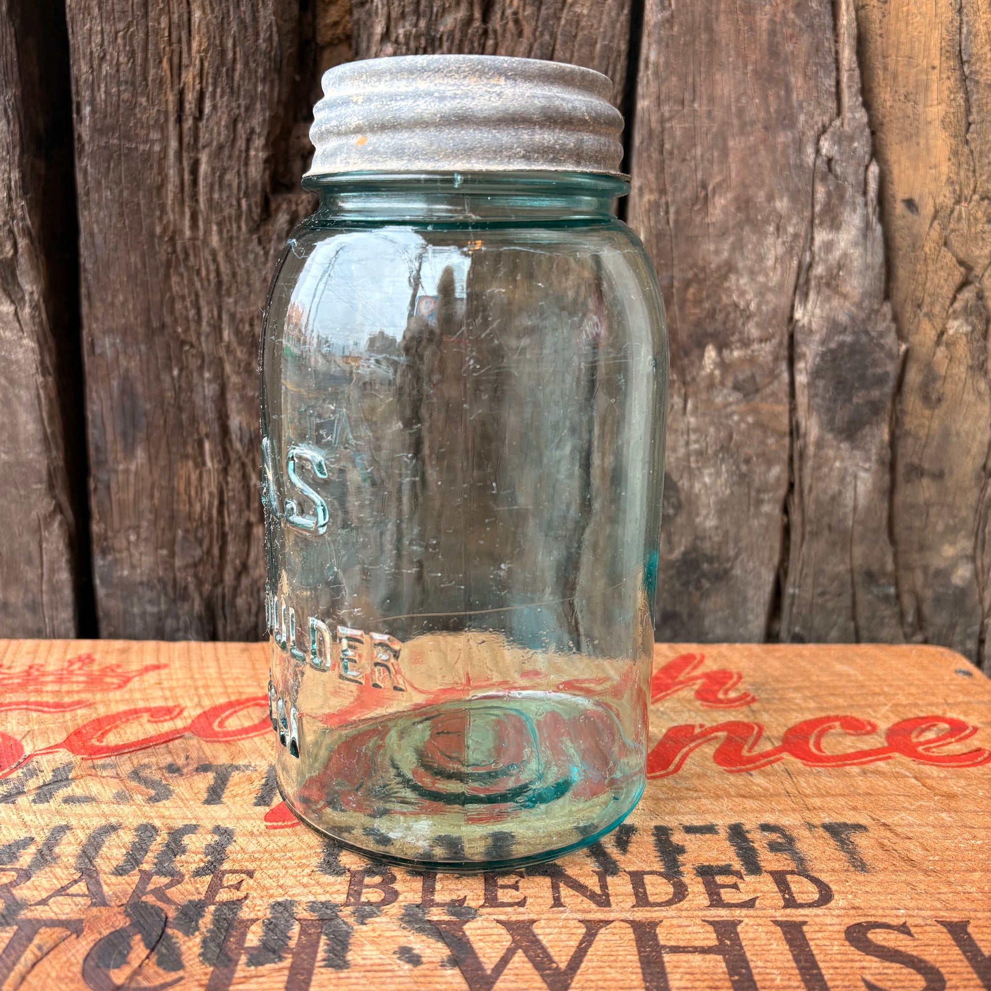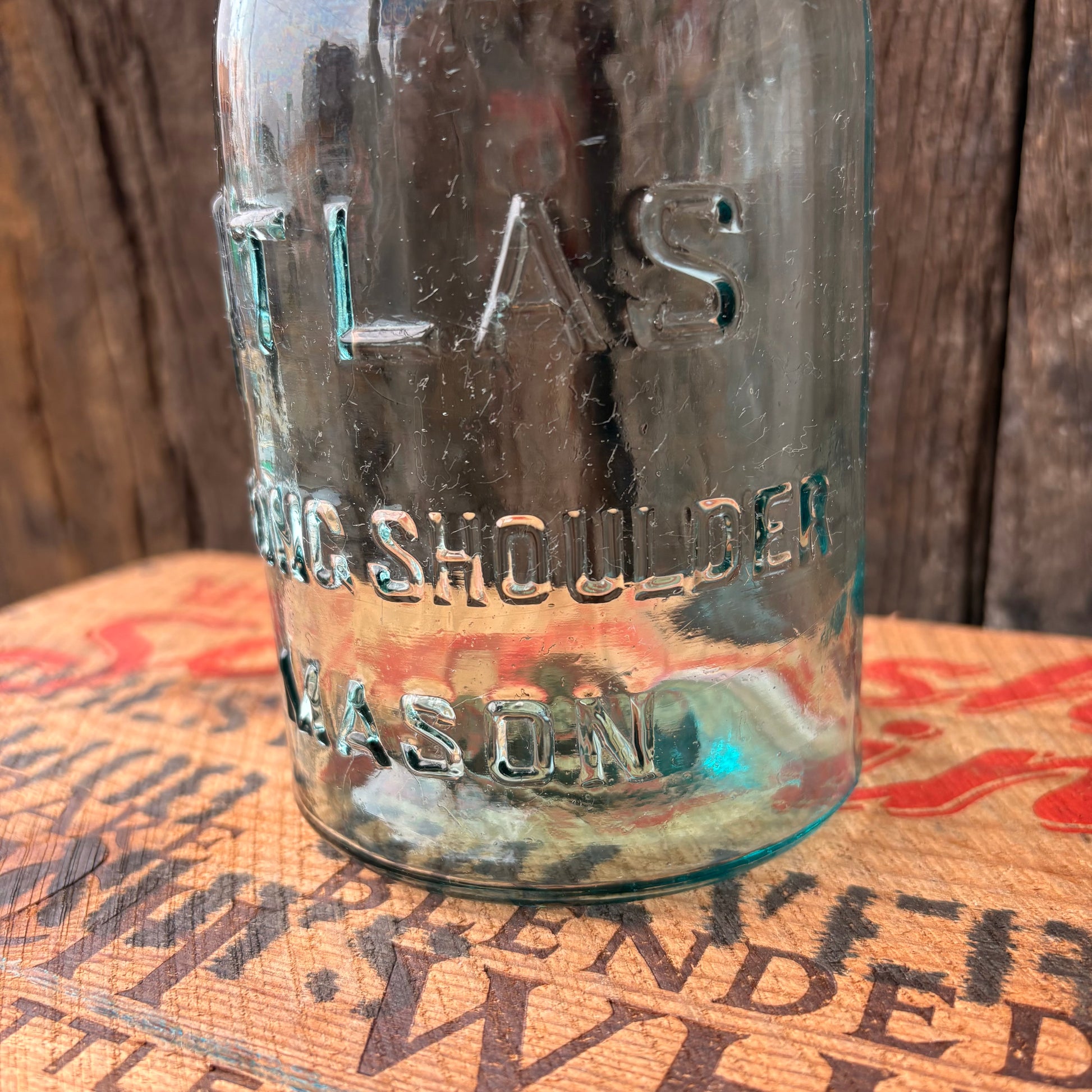 【1910s-1930s USA vintage】Hazel-Atlas ATLAS Strong Shoulder MASON Jar Glass Bottle