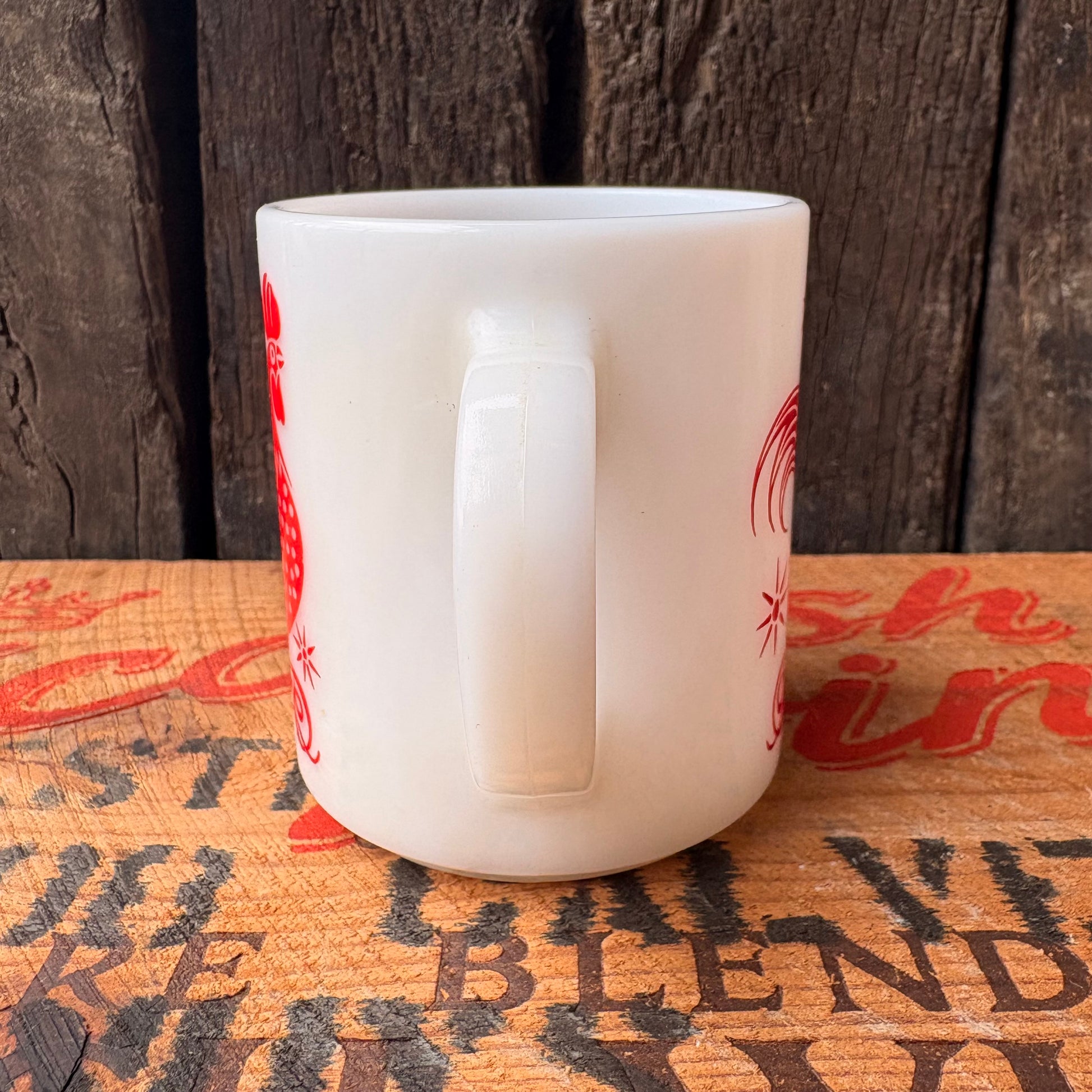 【1950s USA vintage】Hazel Atlas Red Rooster Milk Glass Mug