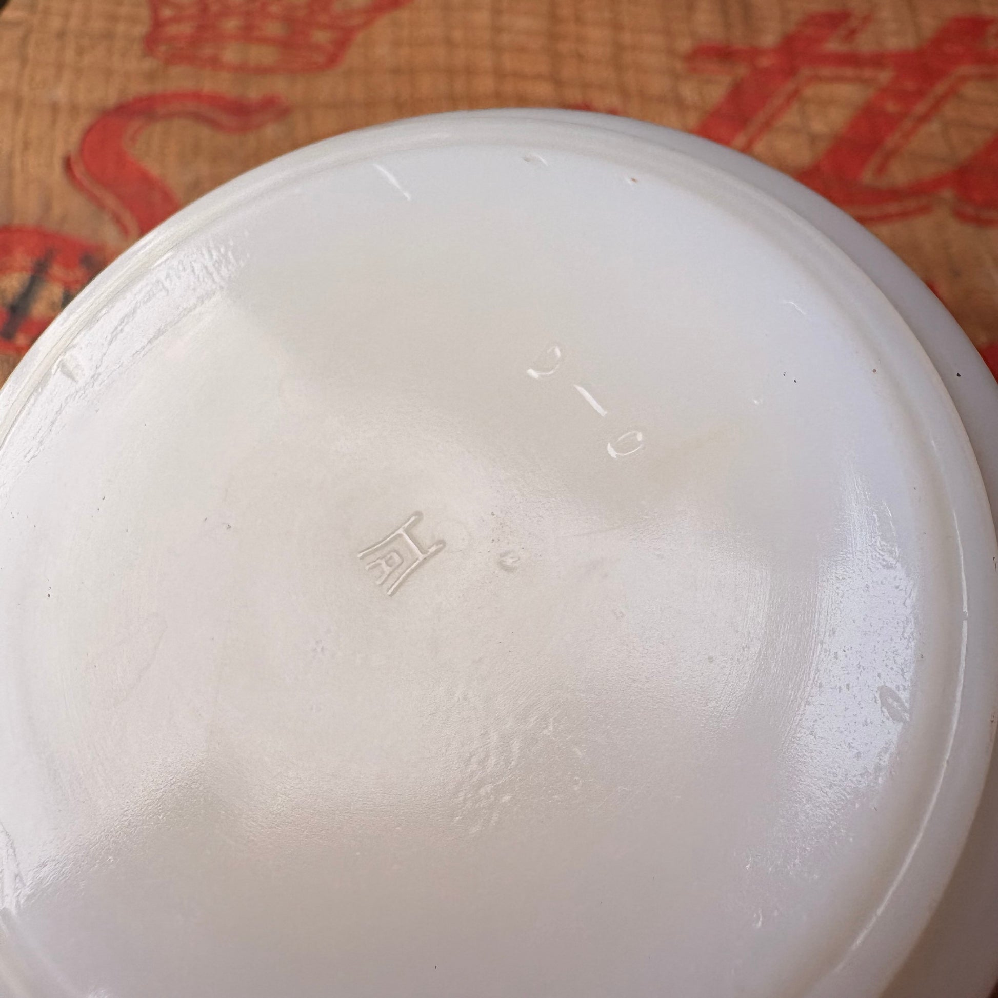 厚みのあるミルクガラスに鮮やかな赤プリントが映え、
