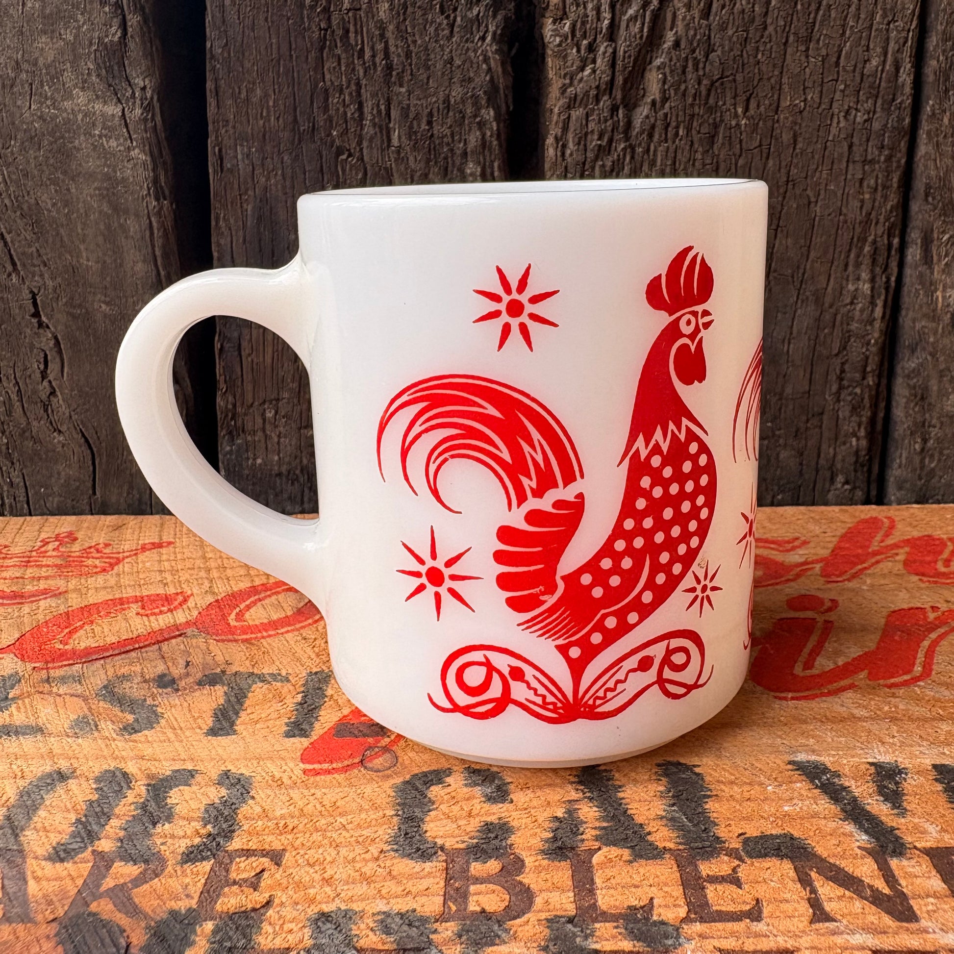 Hazel Atlas社製、赤いルースターが印象的なミルクガラスマグ!