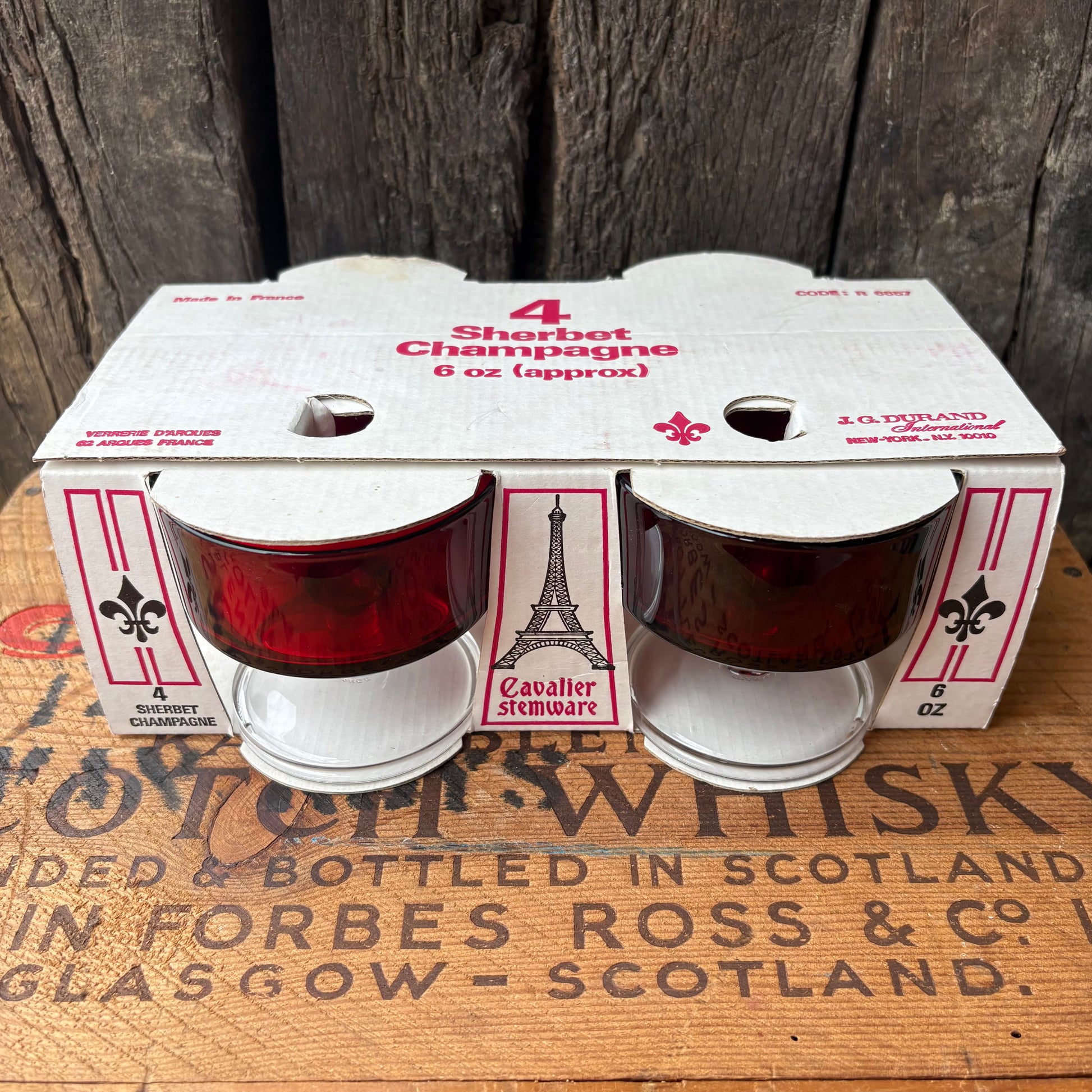 【1960s-1970s France Vintage】J.G. Durand “Cavalier Stemware” Red Glass Set