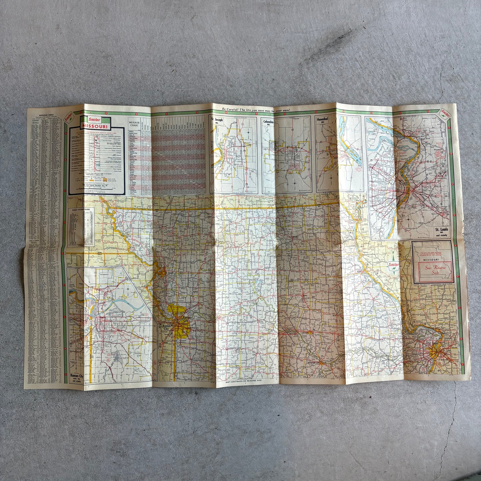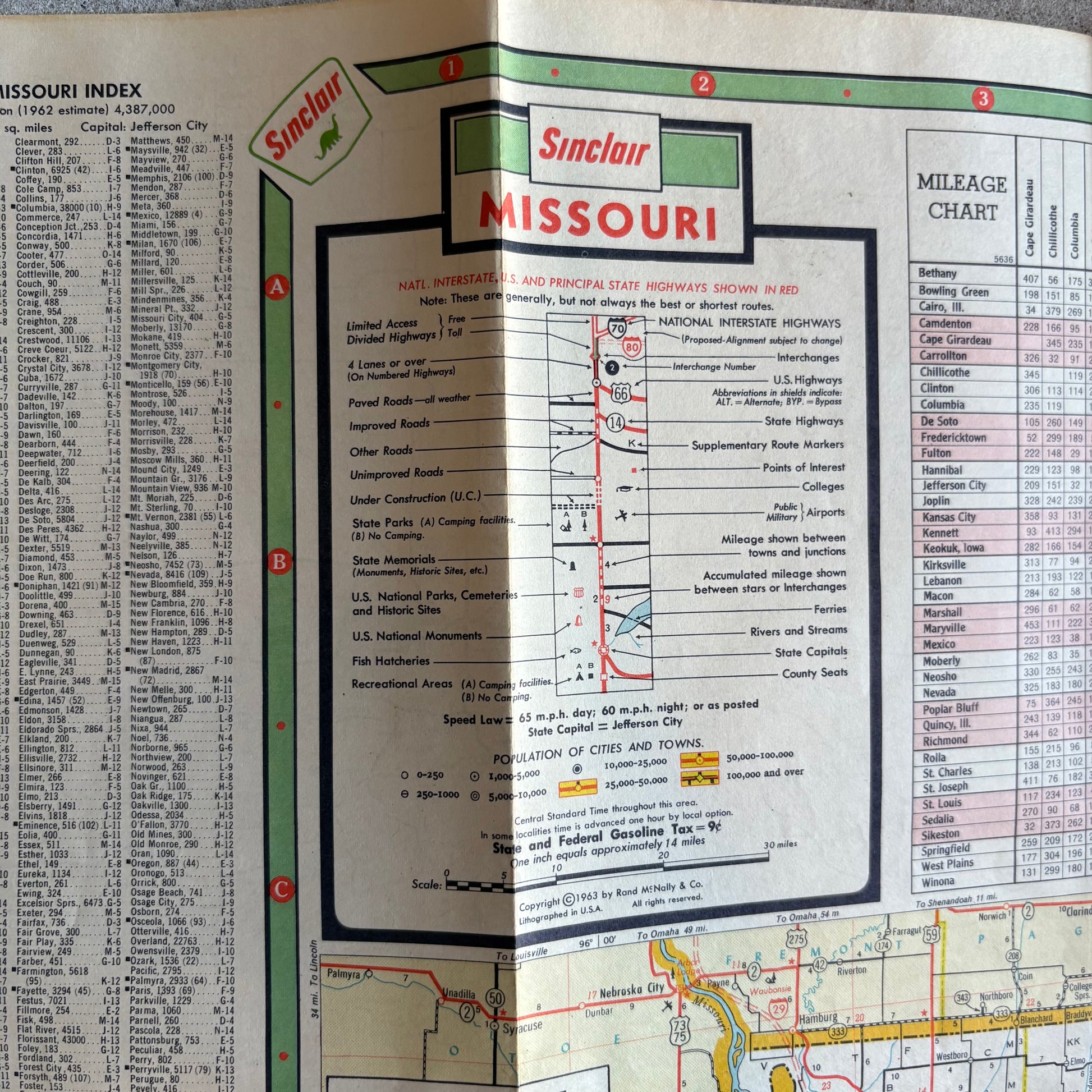 1963年のSinclair発行、ミズーリ州ロードマップ。