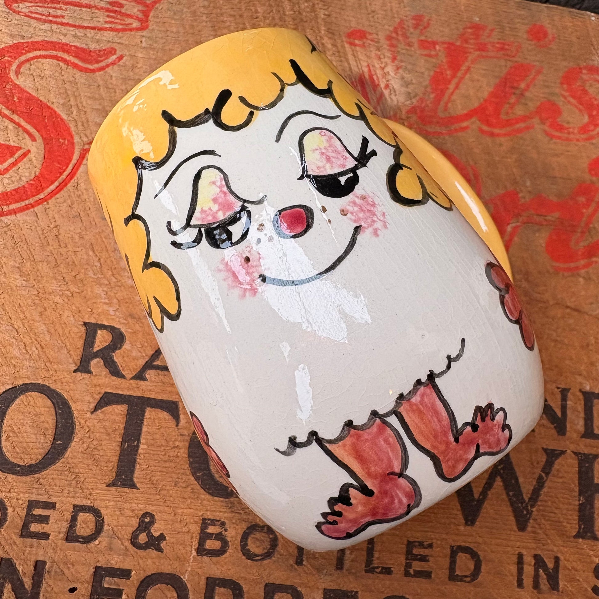 【1970s USA Vintage】 Hand-Painted Girl Character Mug