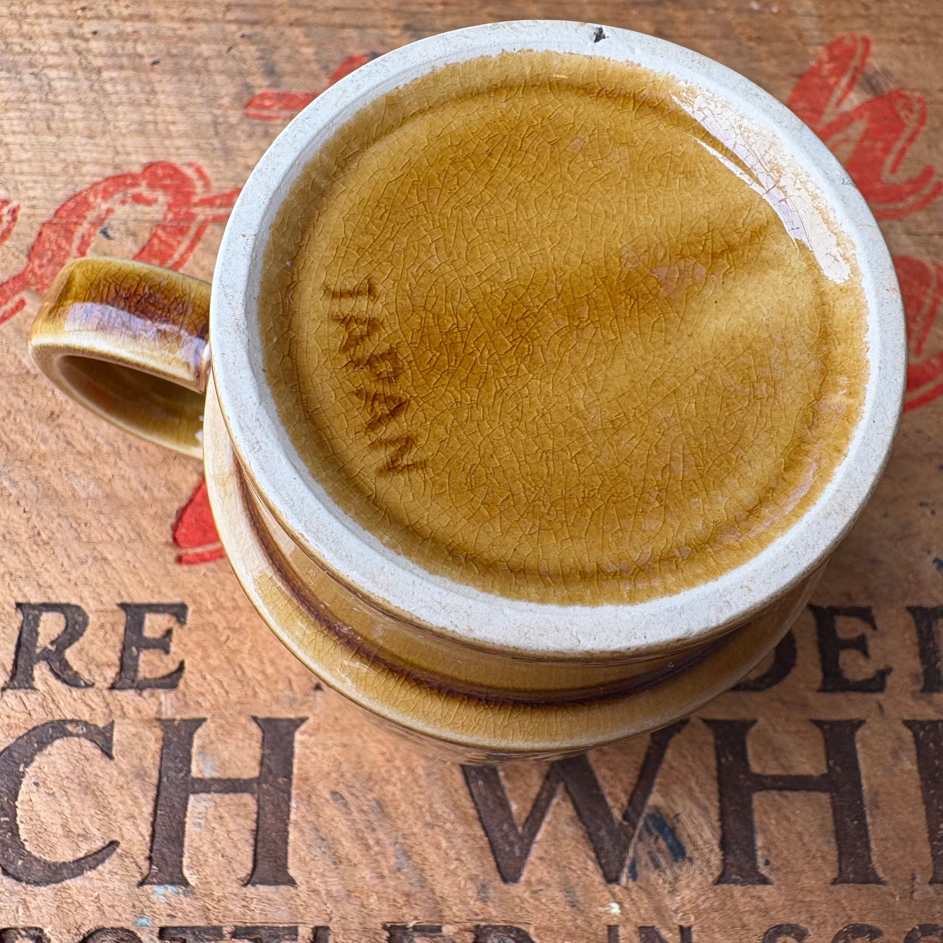 【1970s vintage】JAPAN stacking mug camel brown flower