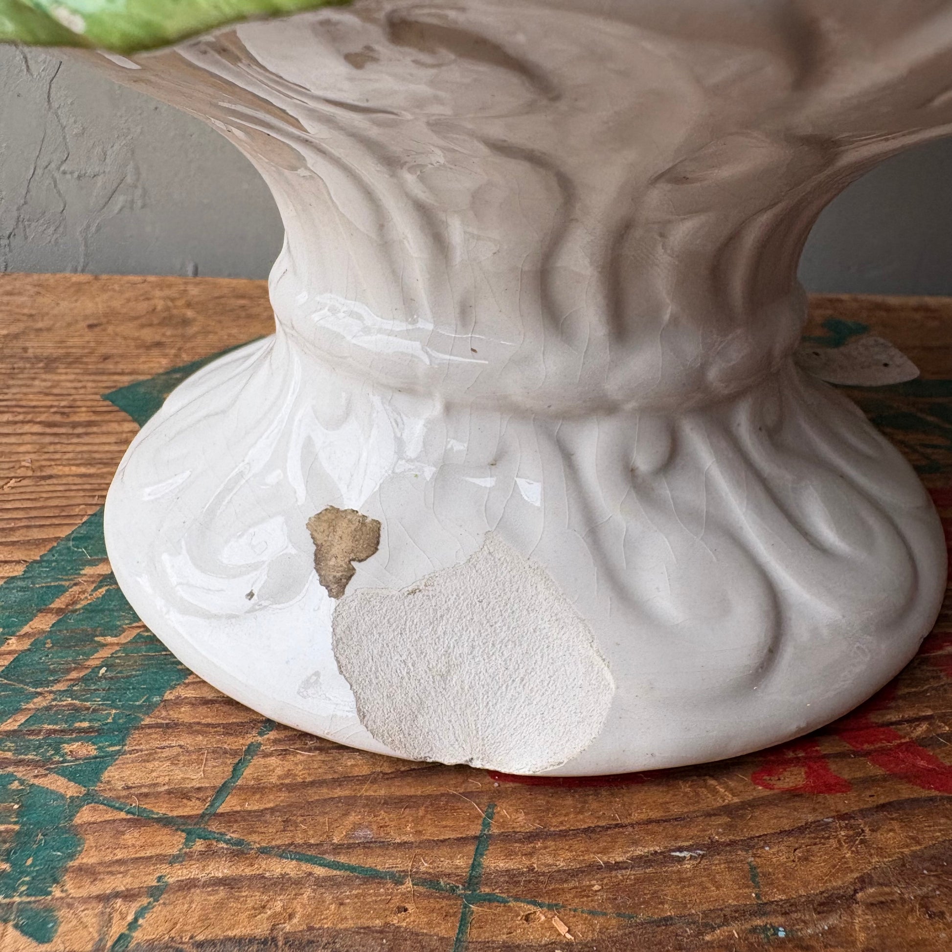白い台座にレリーフ模様が施され、様々な手描きのフルーツと葉が飾られています◎