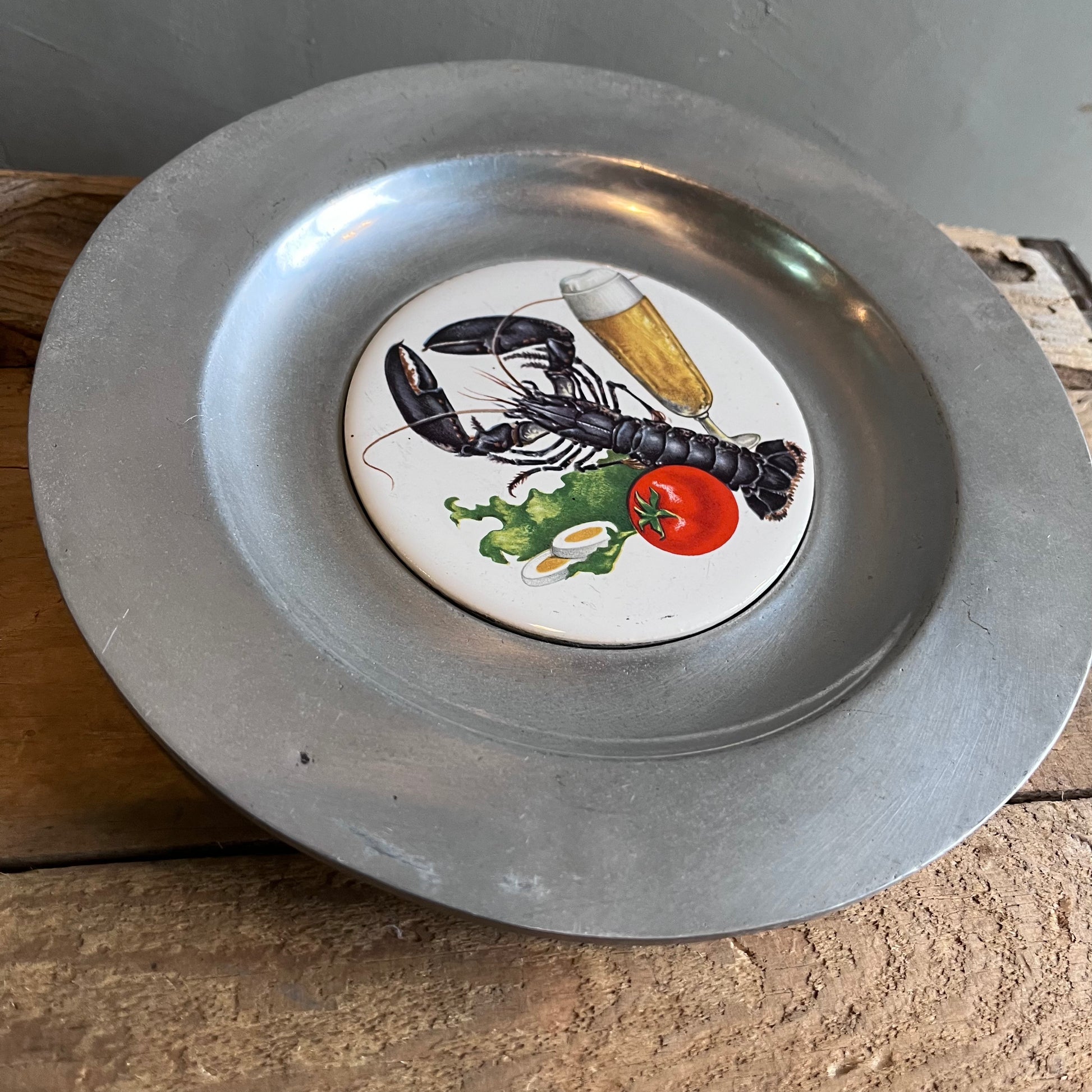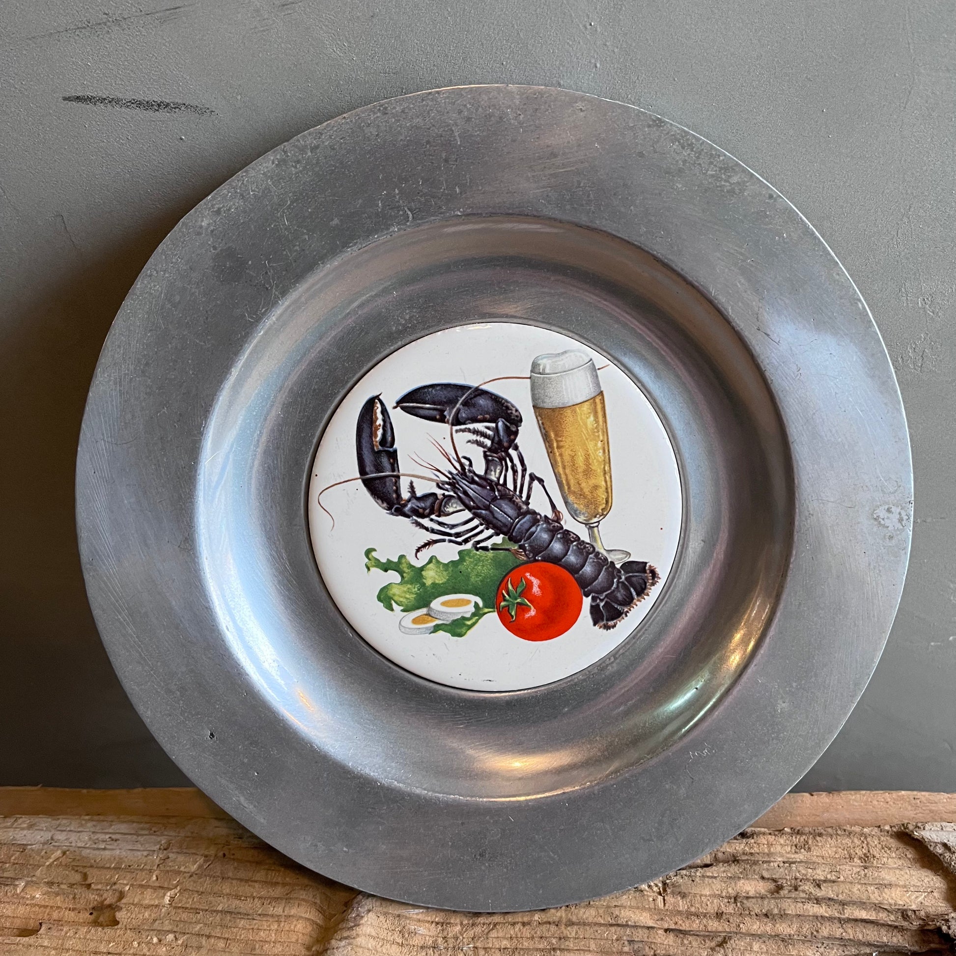 【PEW TA TEX】ピューター プレート型壁掛け ロブスターとビール