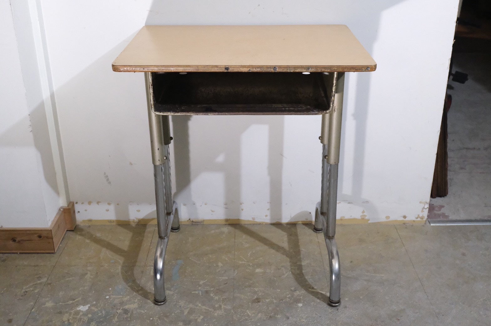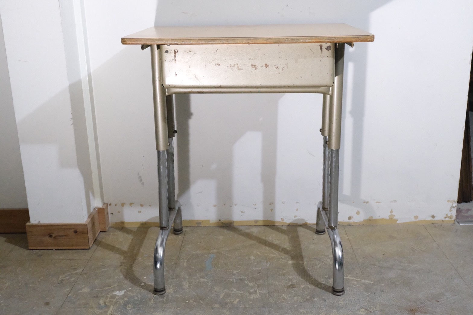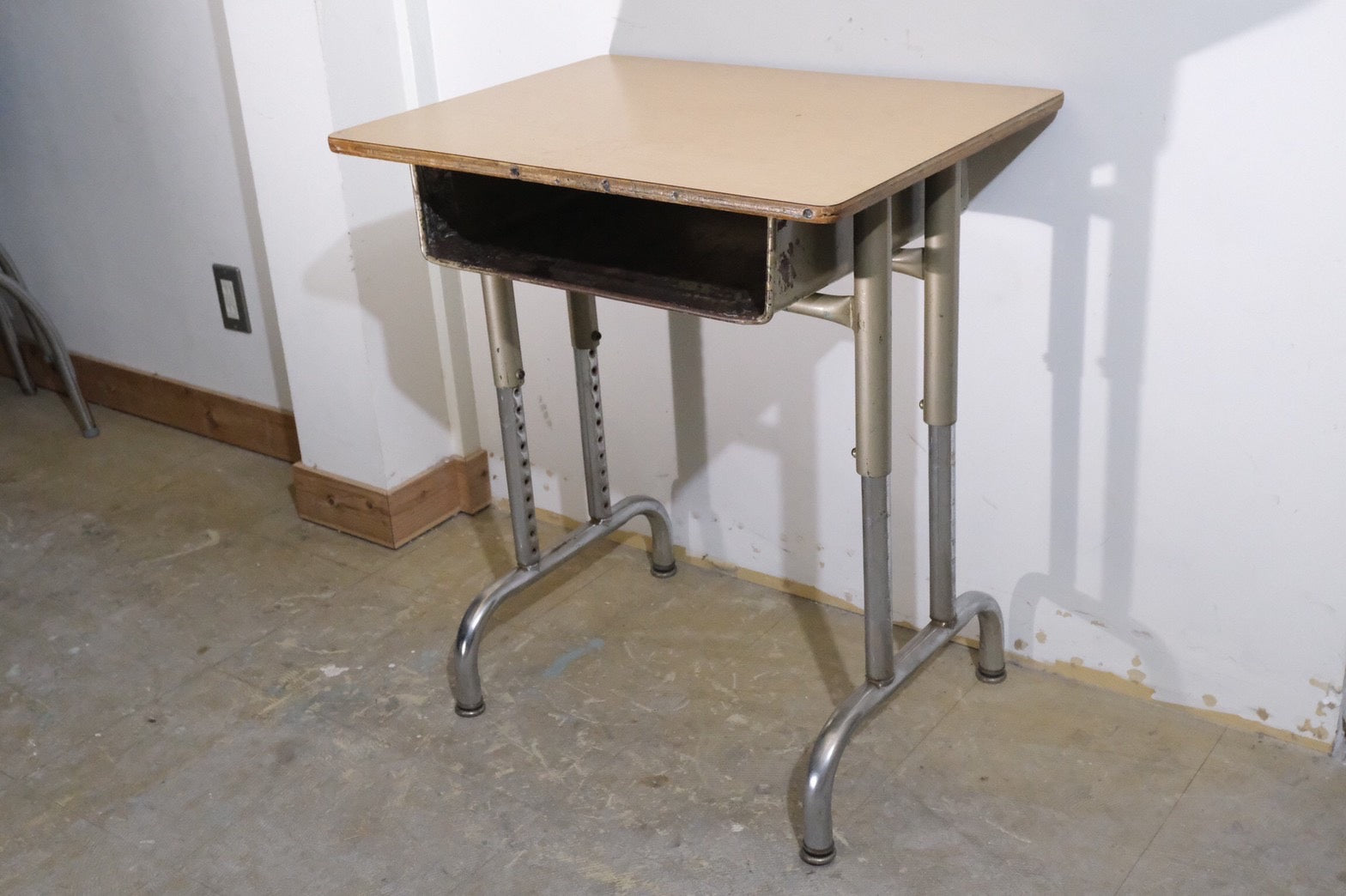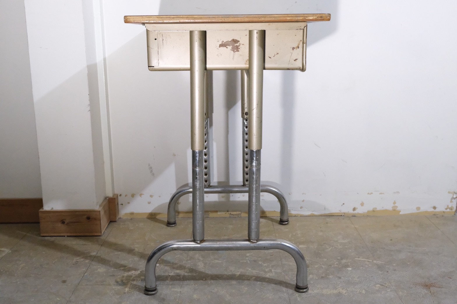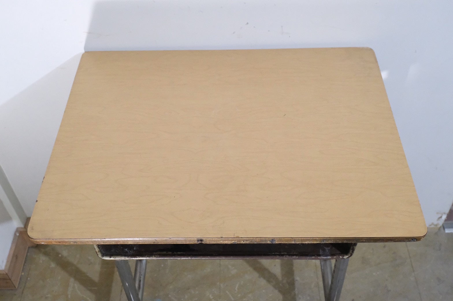 アメリカの学校で使用されていたビンテージのスクールデスクです、リビングの空いたスペースに置いて、ちょっとした作業や宿題用の机などにいかがでしょうか。