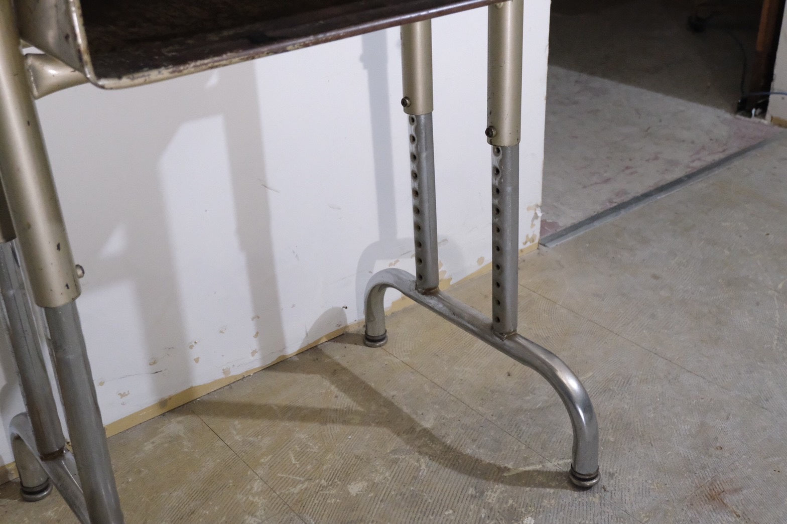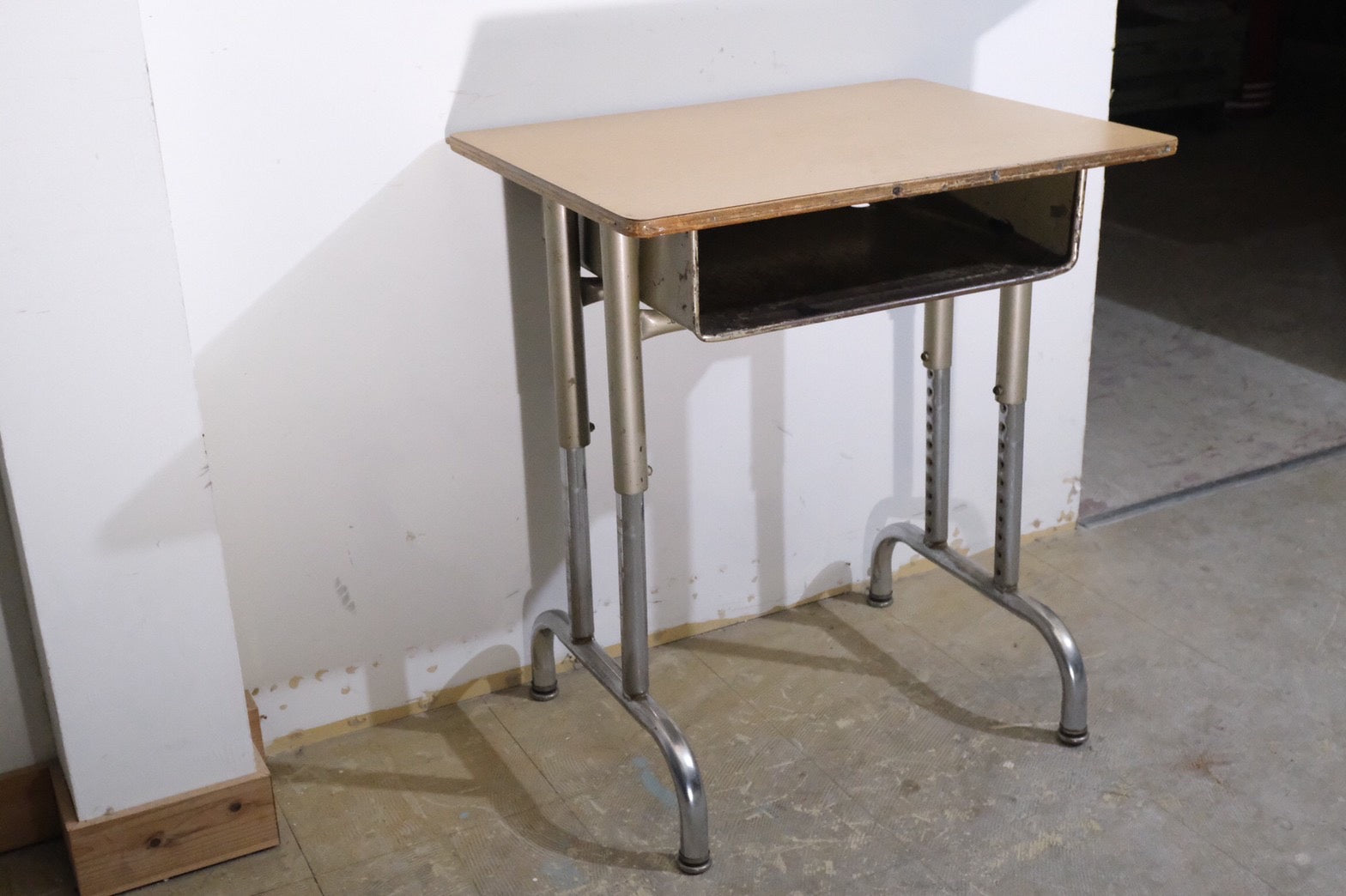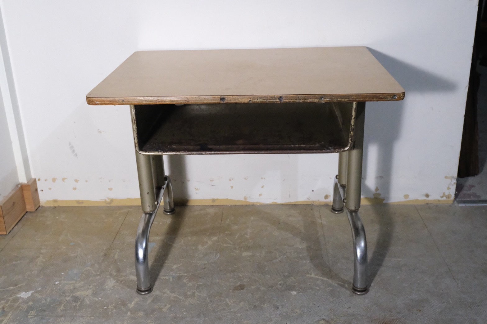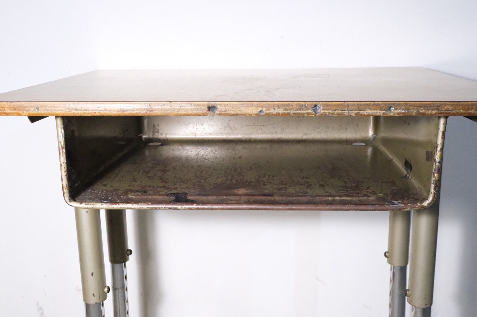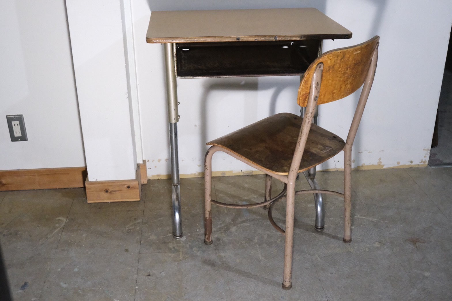 アメリカの学校で使用されていたビンテージのスクールデスクです、リビングの空いたスペースに置いて、ちょっとした作業や宿題用の机などにいかがでしょうか。