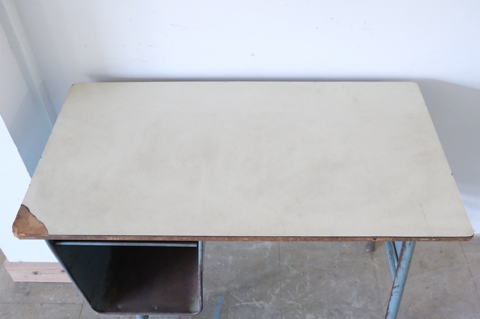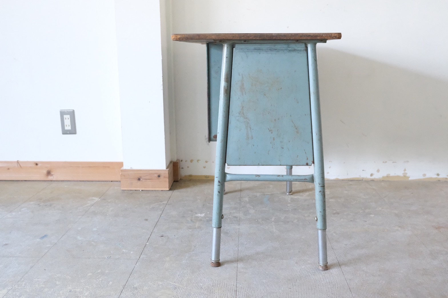 【USA vintage】ビンテージデスク ブルー 作業台 片袖机 学習机