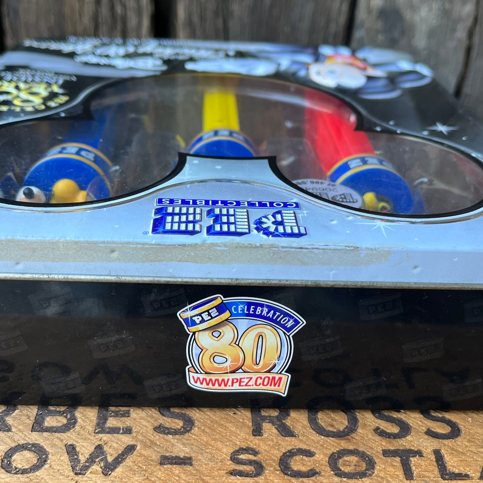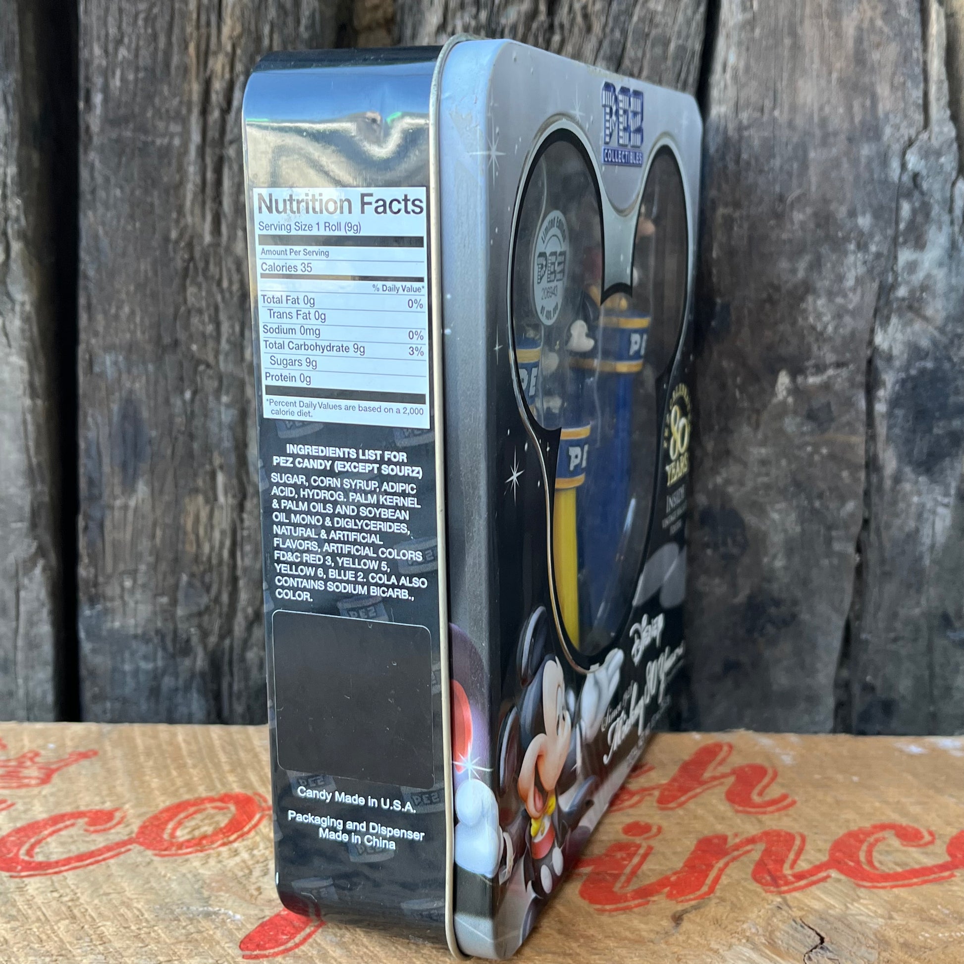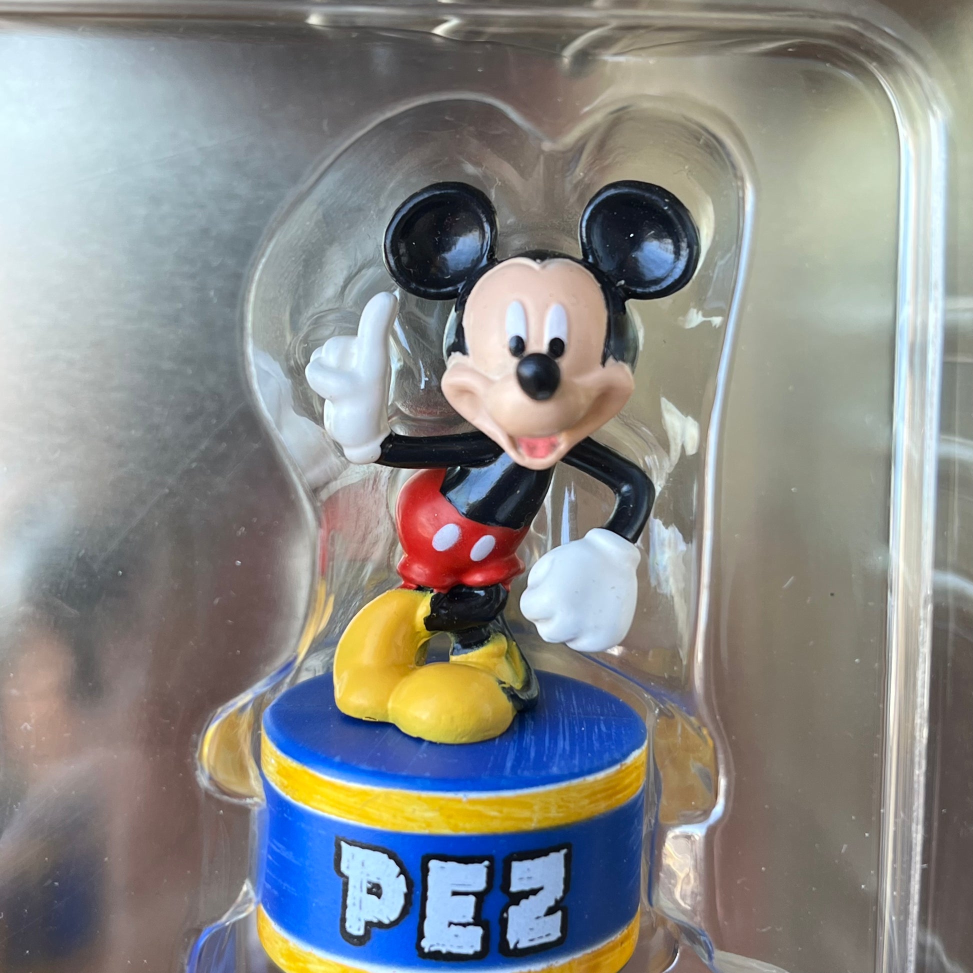 お菓子のPEZとのコラボ商品で年代別ミッキーのPEZ本体が三体入っています。