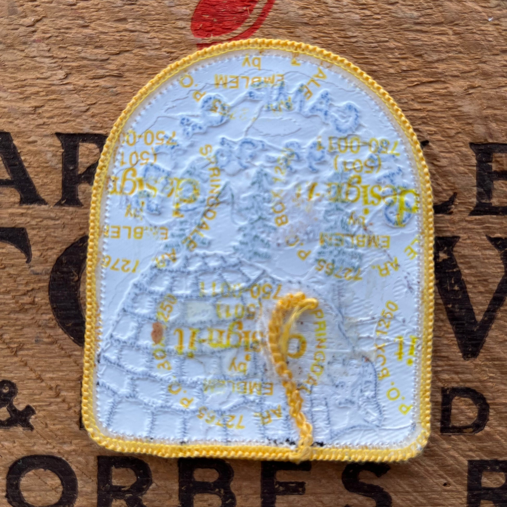 イグルーを覗き込んでいるホッキョクグマが描かれた、キャンプ・オークス(Camp Oakes)の記念ワッペンです。