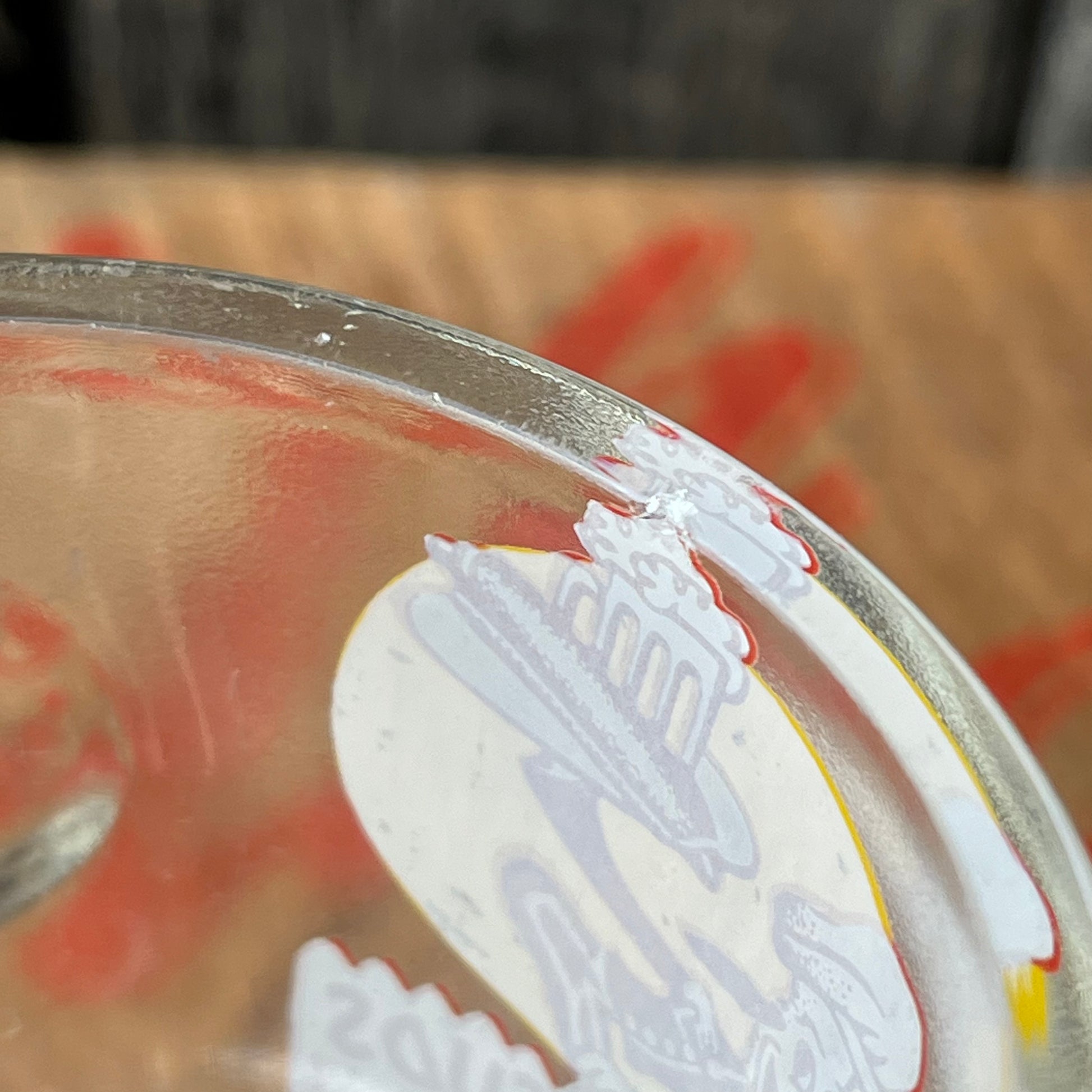アイコニックなロゴが入ったヴィンテージのDog ‘n Sudsガラスマグ。