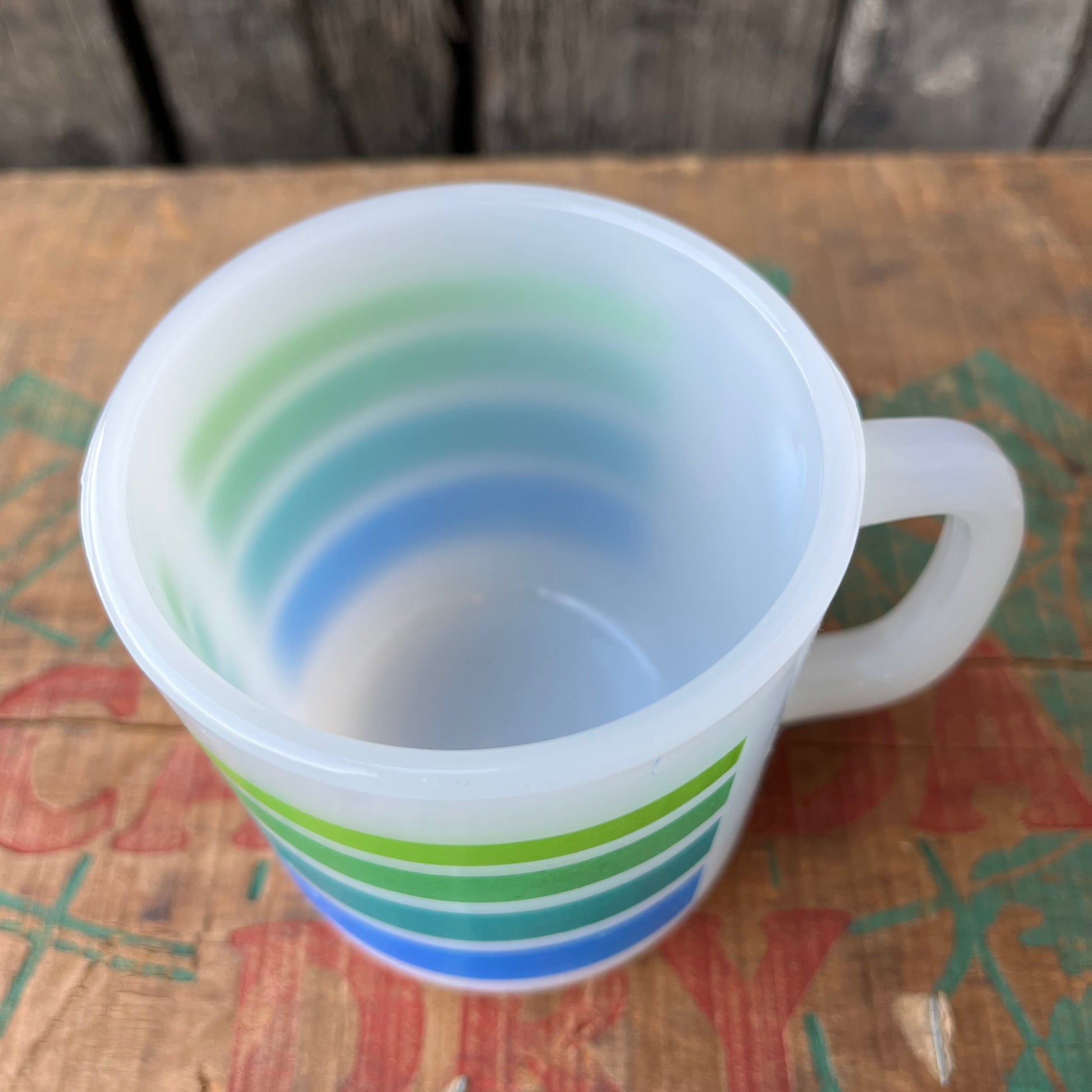 【USA vintage】GLASBAKE Rainbow Stripe Mugcup (blue)