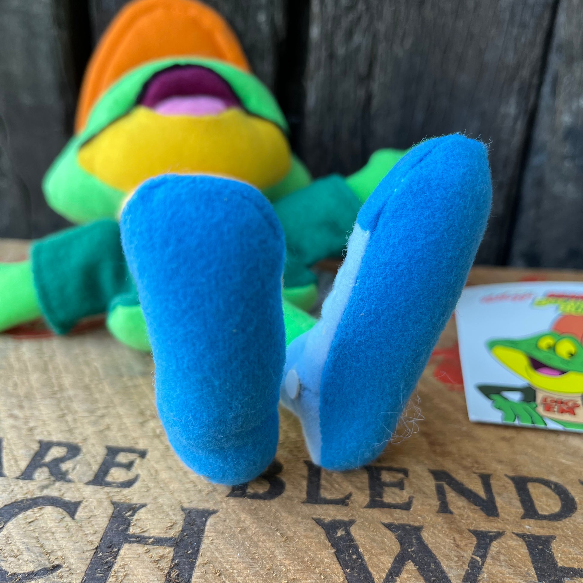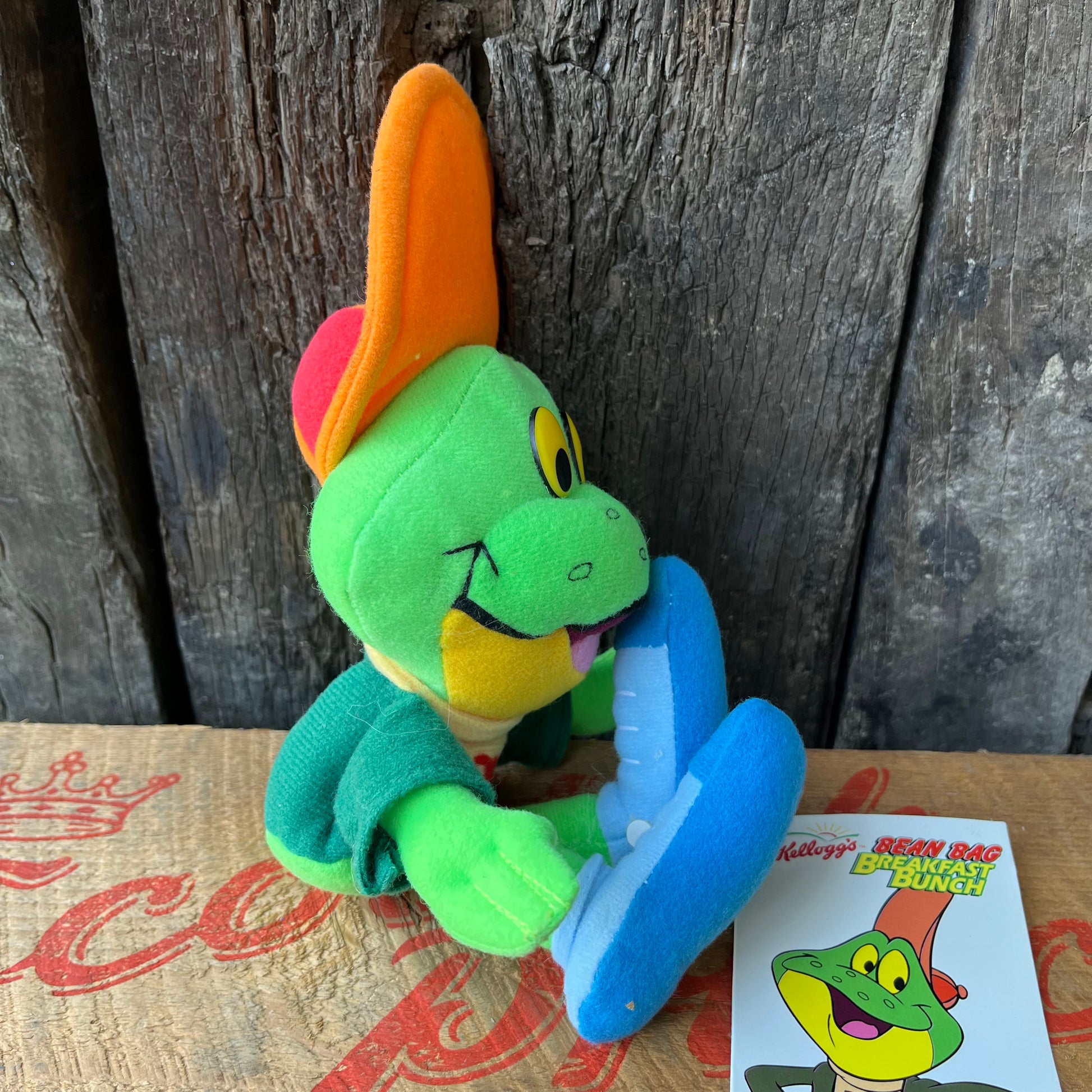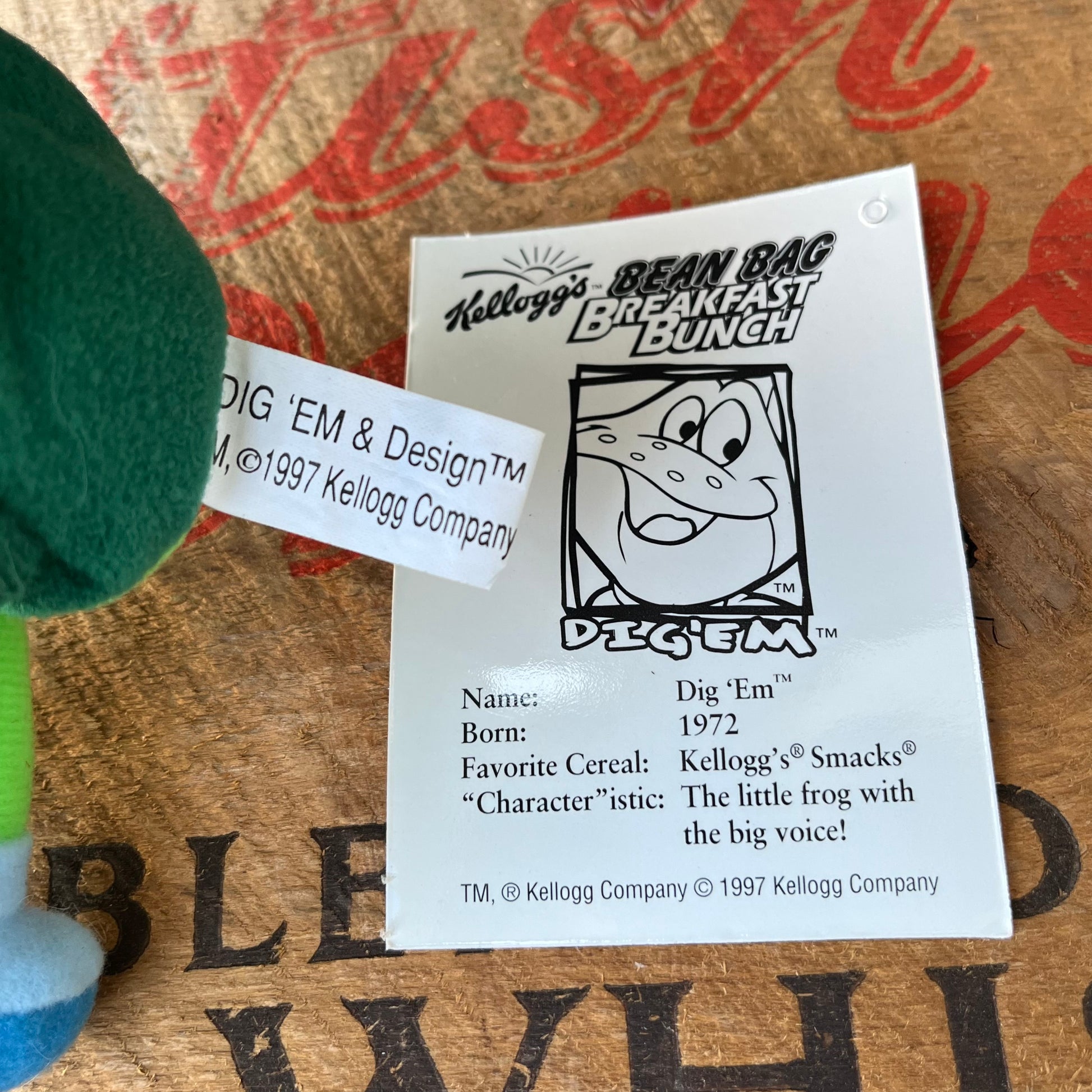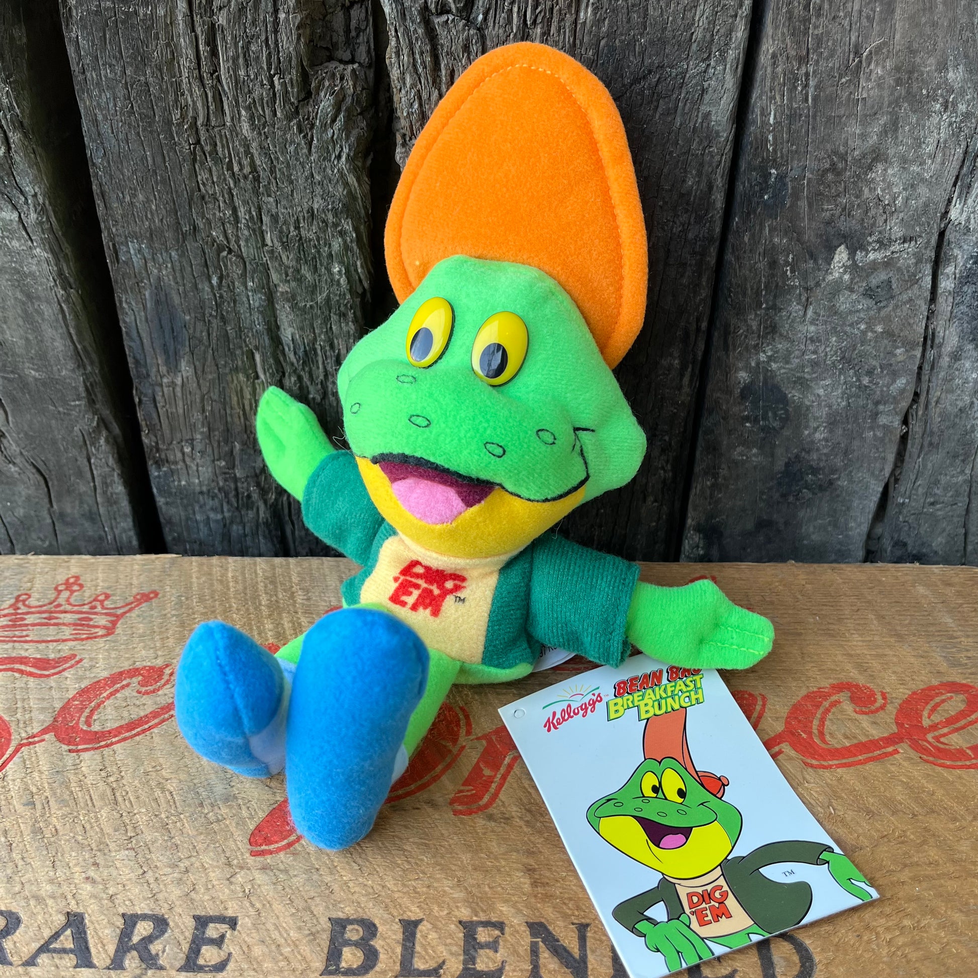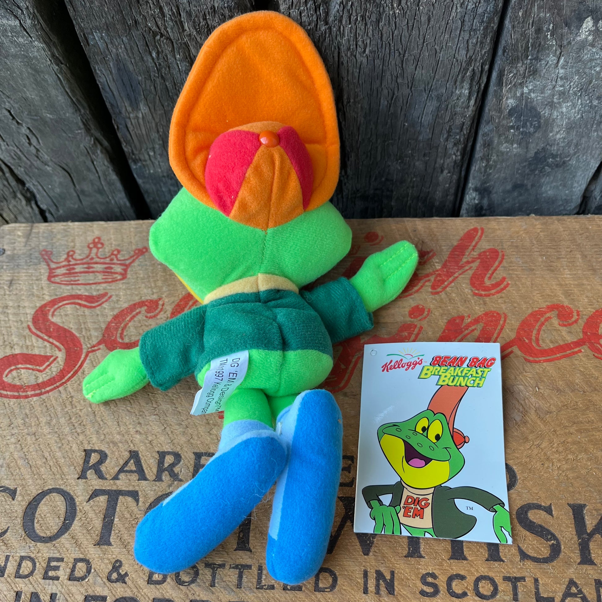 ケロッグのシリアル「ハニースマック」のマスコットキャラクターであるディグ・エム・フロッグ(Dig'em Frog)のぬいぐるみです。